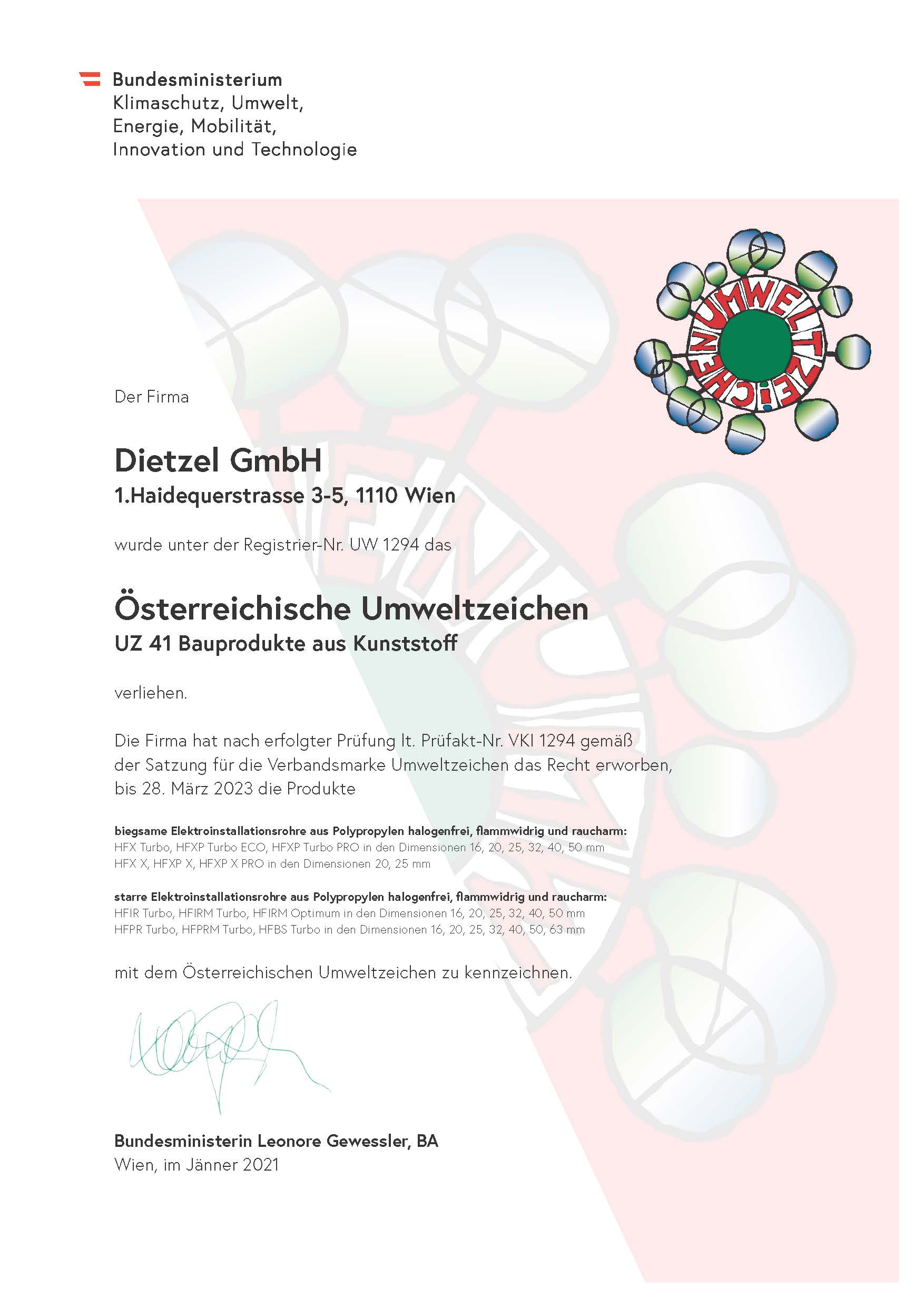 | Austrian Ecolabel - Certificate PDF 224.58 KB | Valid from: 01.01.2023 | Download |